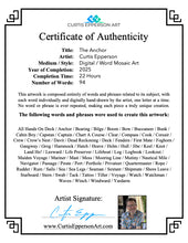 For this Anchor piece, I carefully selected words like helmsman, crow’s nest, and nautical mile, along with phrases such as “all hands on deck,” “chart a course,” and “maiden voyage.” In total, you’ll find over 70 words and phrases hidden throughout the design, each one paying tribute to the maritime spirit of adventure, duty, and the call of the open sea.